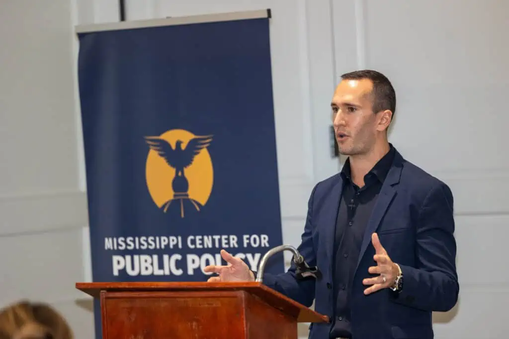 Rep Aaron Pilkington, one of the cosponsors of Arkansas reforms, spoke at the event, explaining how school choice could be implemented in Mississippi.